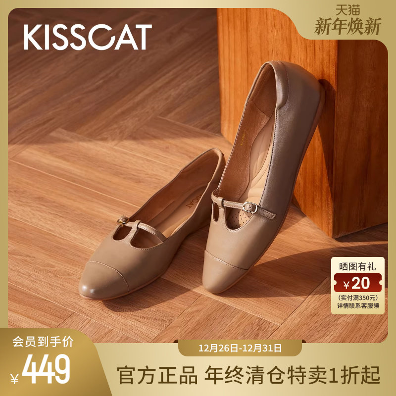 接吻猫[浪漫飞奔]秋季新款气质T字带软底鞋玛丽珍平底尖头单鞋女