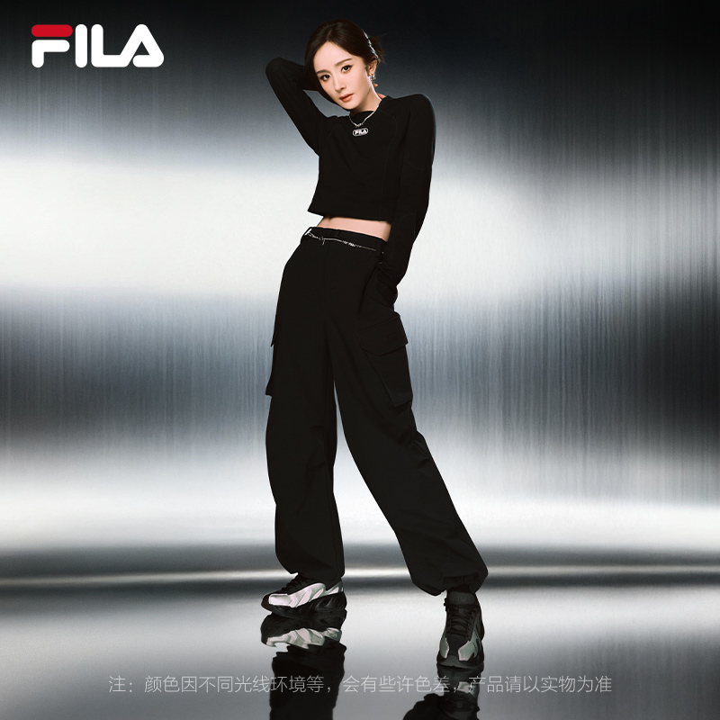 杨幂同款FILA 斐乐官方女士梭织长裤2025冬季新款休闲舒适工装裤