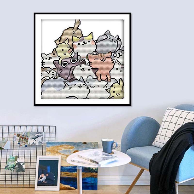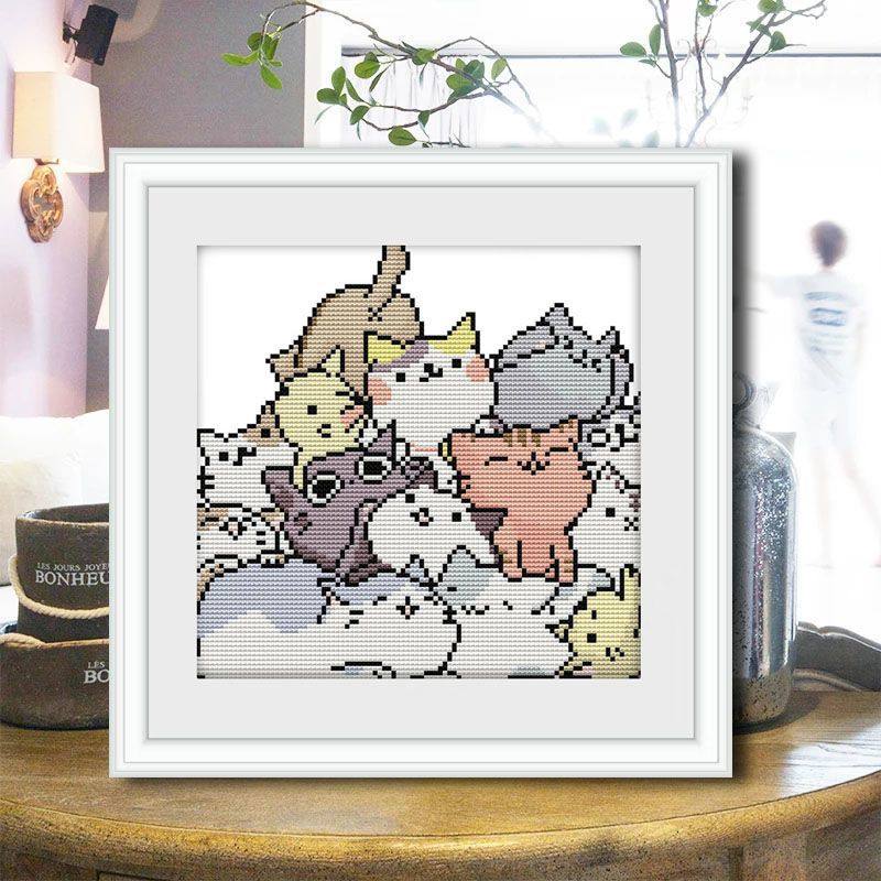 可爱猫咪十字绣2025新款diy礼物客厅卧室卡通新手儿童小幅简单绣