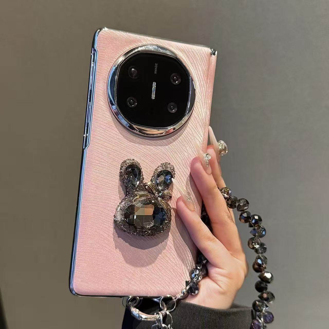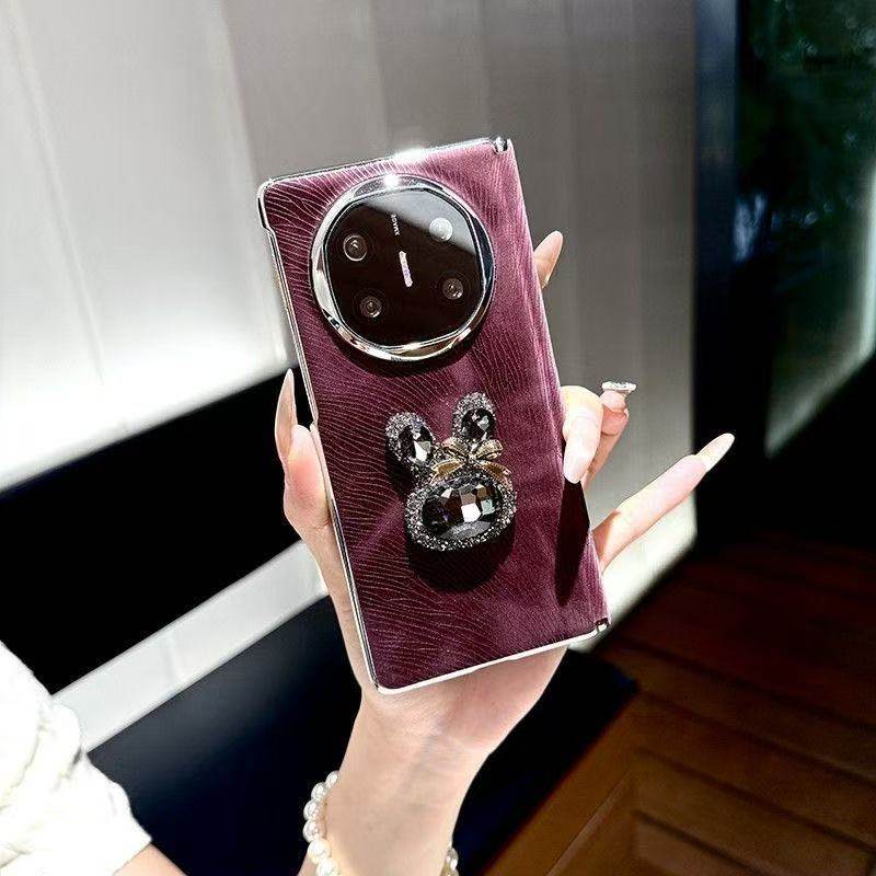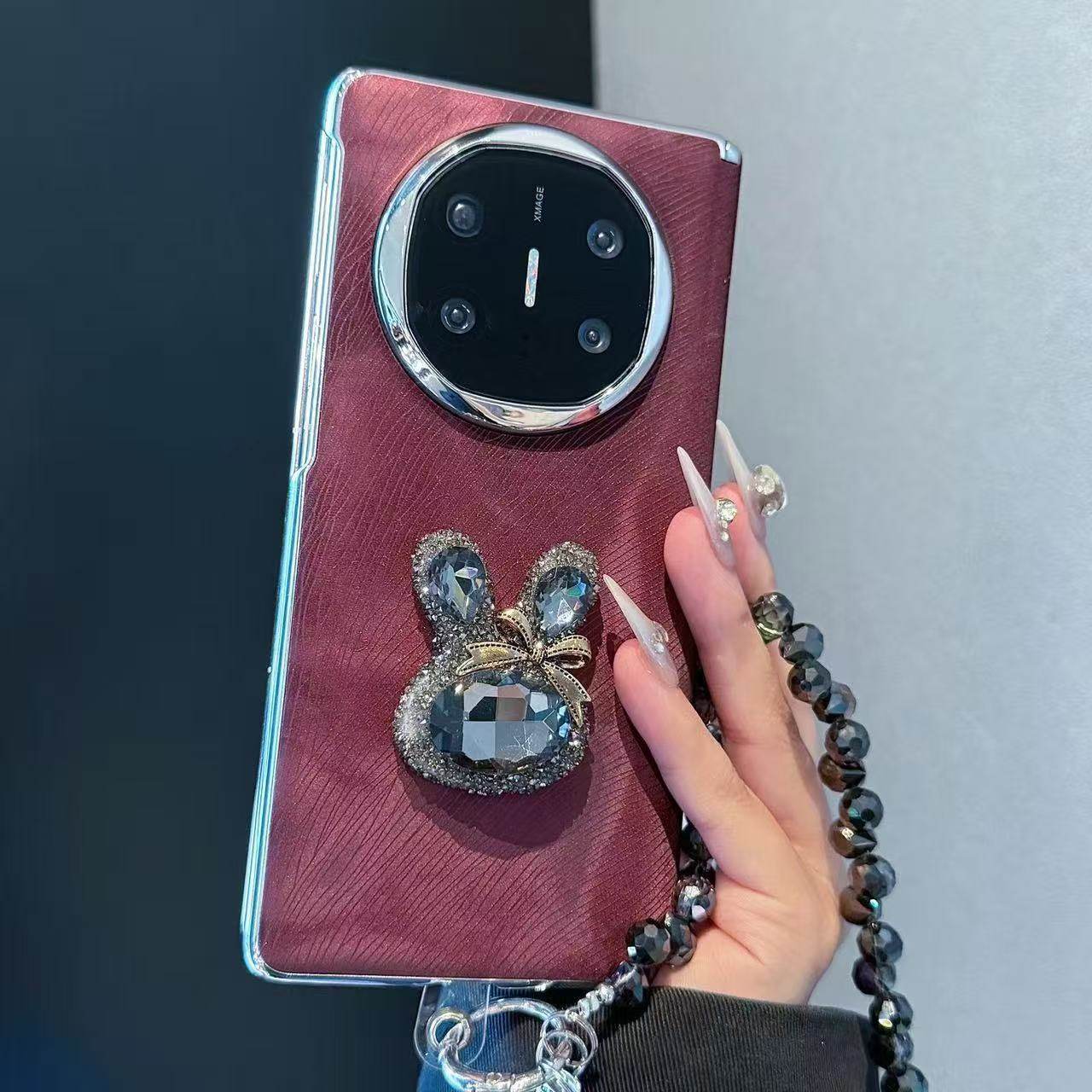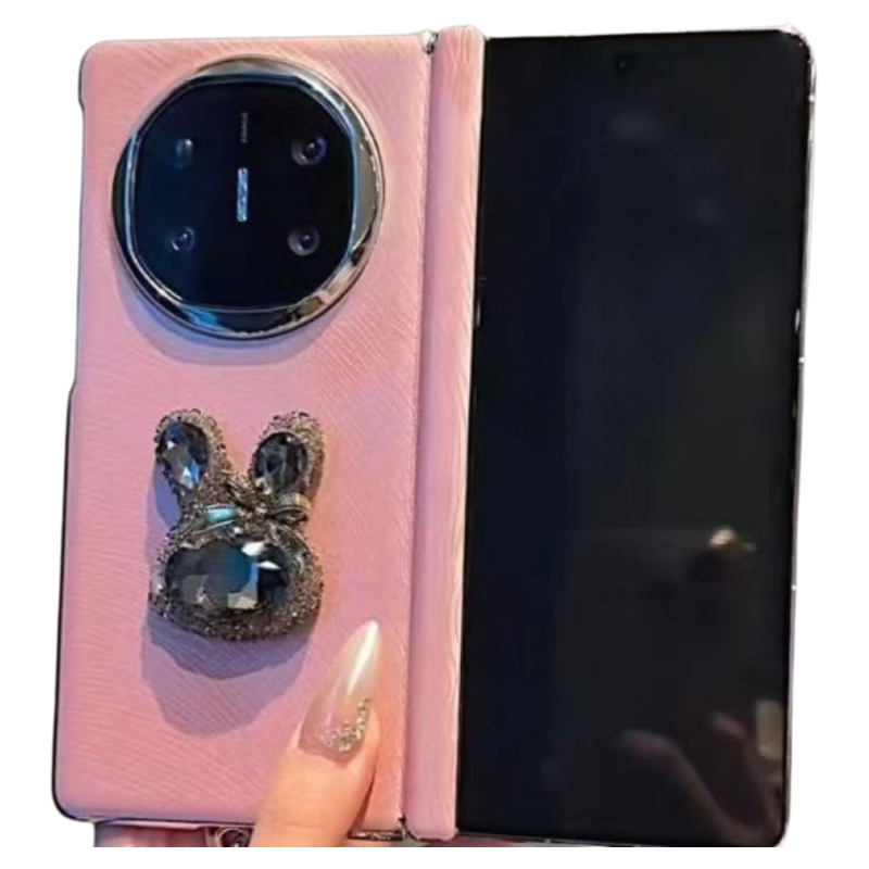 适用于华为Mate X5茱萸粉孔雀纹丝绒立体水钻兔兔手机壳Mate X5典藏版高级轻奢防摔保护套
