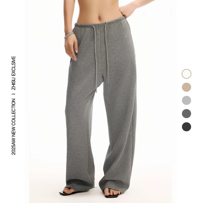 XZ8371冬季2025加绒垂感阔腿裤百搭系带松紧腰宽松休闲显瘦弯刀裤