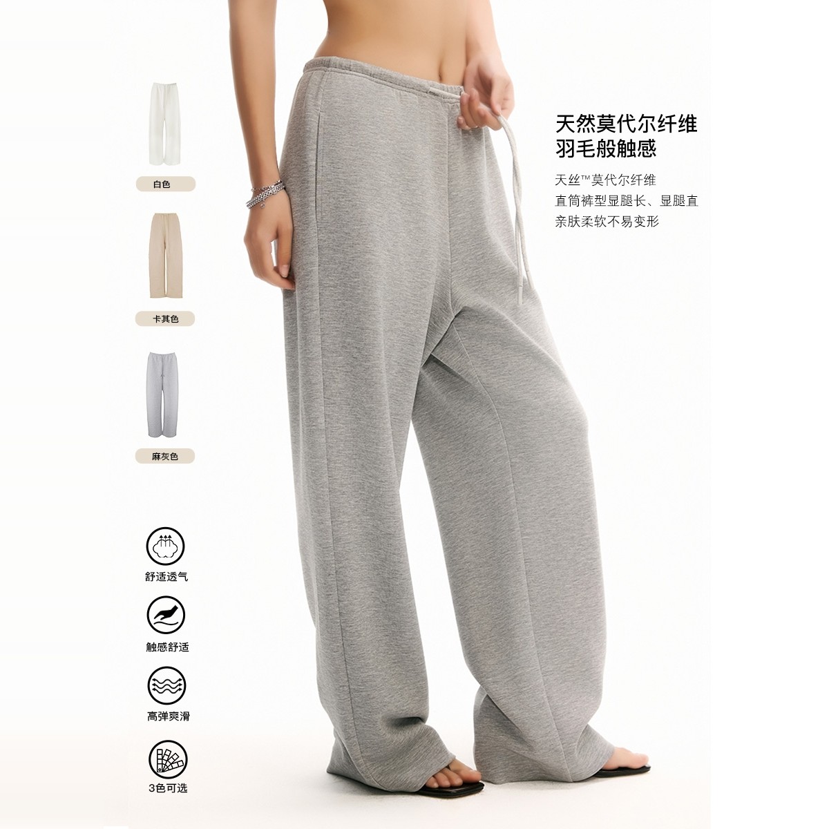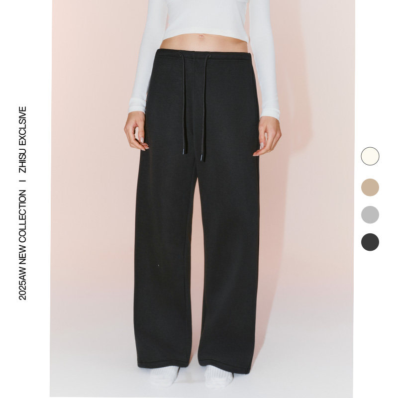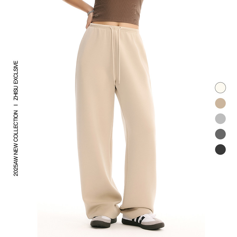 之塑美式松弛感休闲裤加绒加厚内衬防透宽松直筒阔腿莫代尔卫裤女