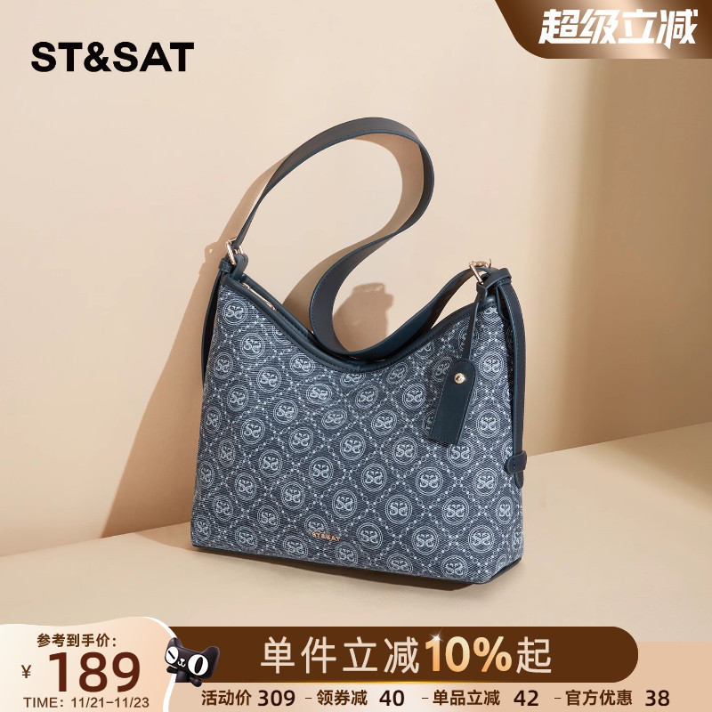 星期六2025新款托特包女式老花腋下包通勤大容量hobo单肩斜挎包包