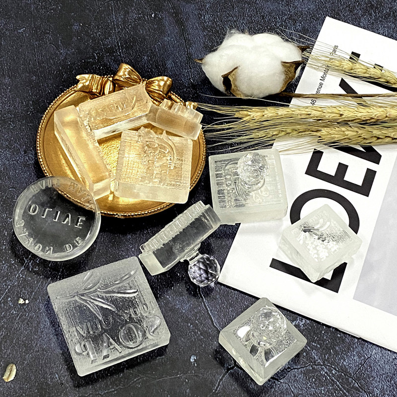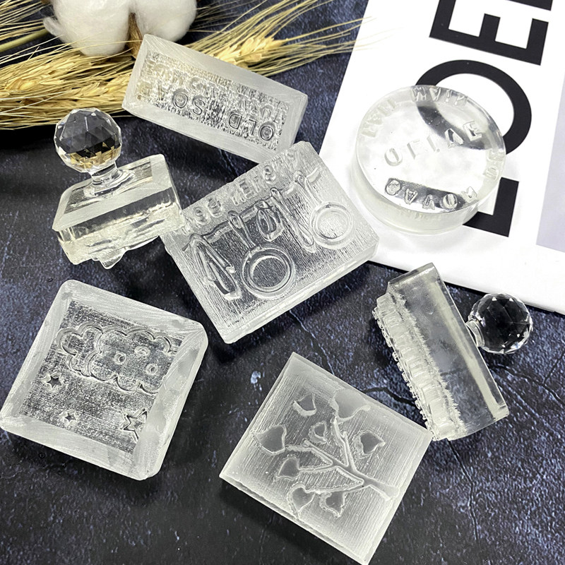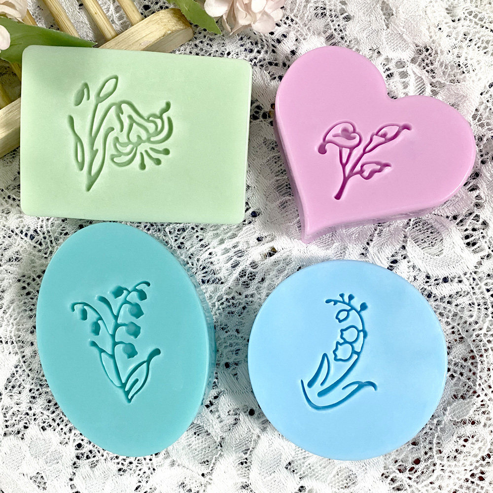 清新可爱小花朵图案亚克力透明印章皂印带手柄陶泥手工香皂肥皂章