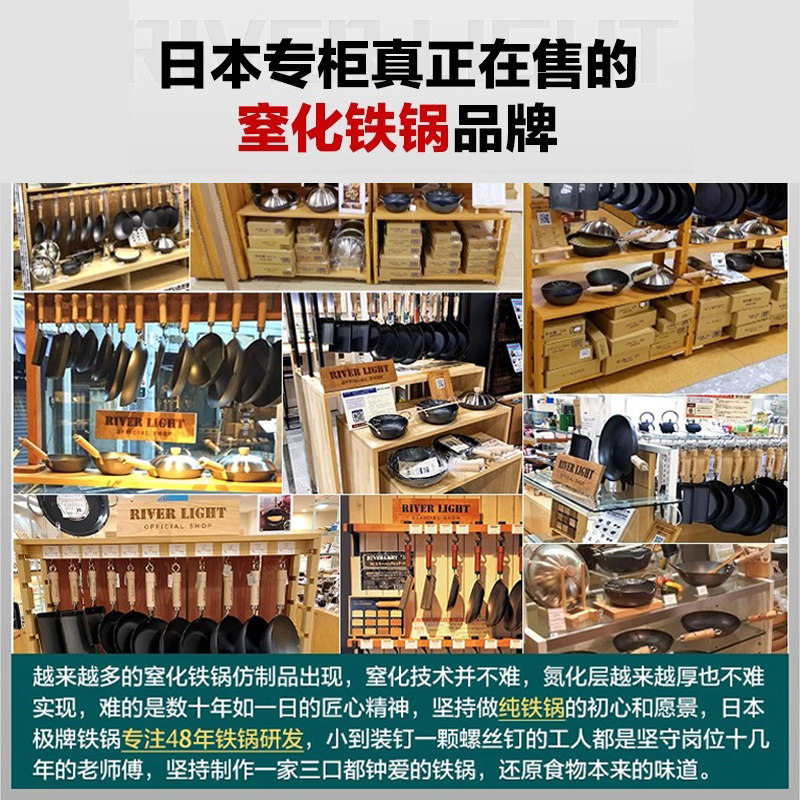 日本极牌RIVERLIGHT原装进口家用平底小铁锅无涂层窒化超轻炒菜锅