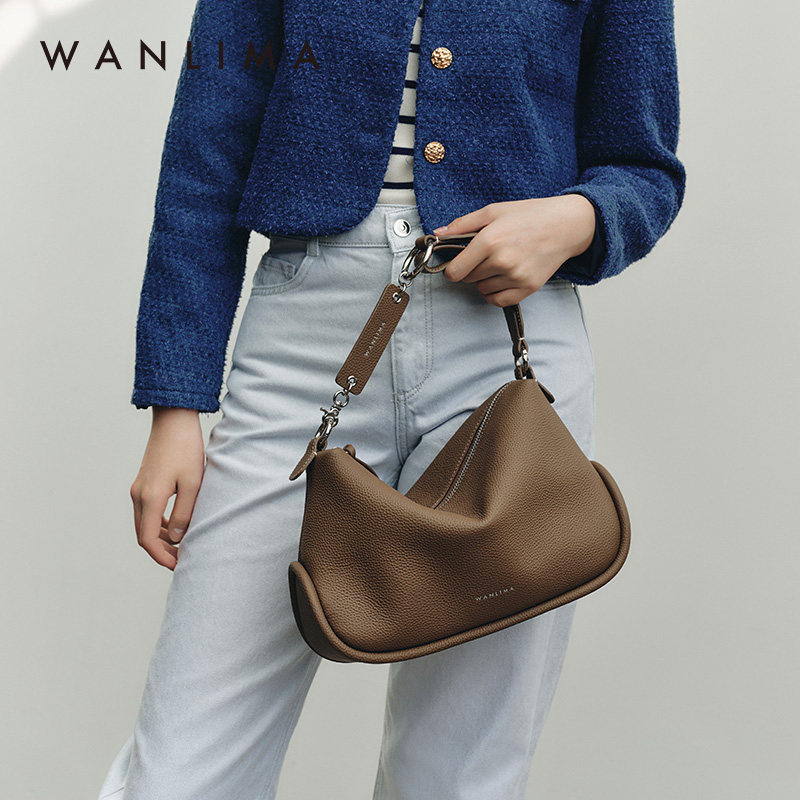 万里马新中式枕头包女腋下包软牛皮单肩斜挎头层牛皮通勤包小方包