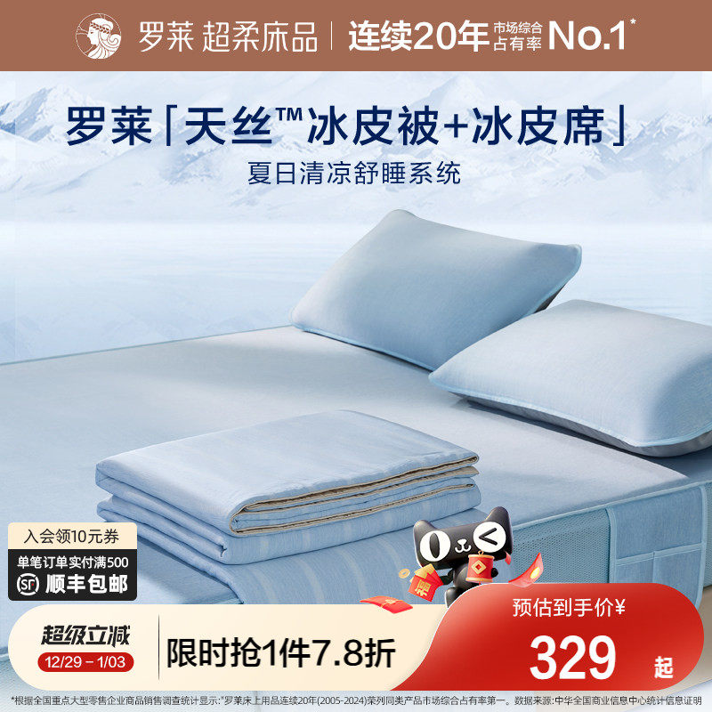 罗莱家纺冰皮夏凉四件套母婴级a类抗菌凉席可机洗席子空调被夏被