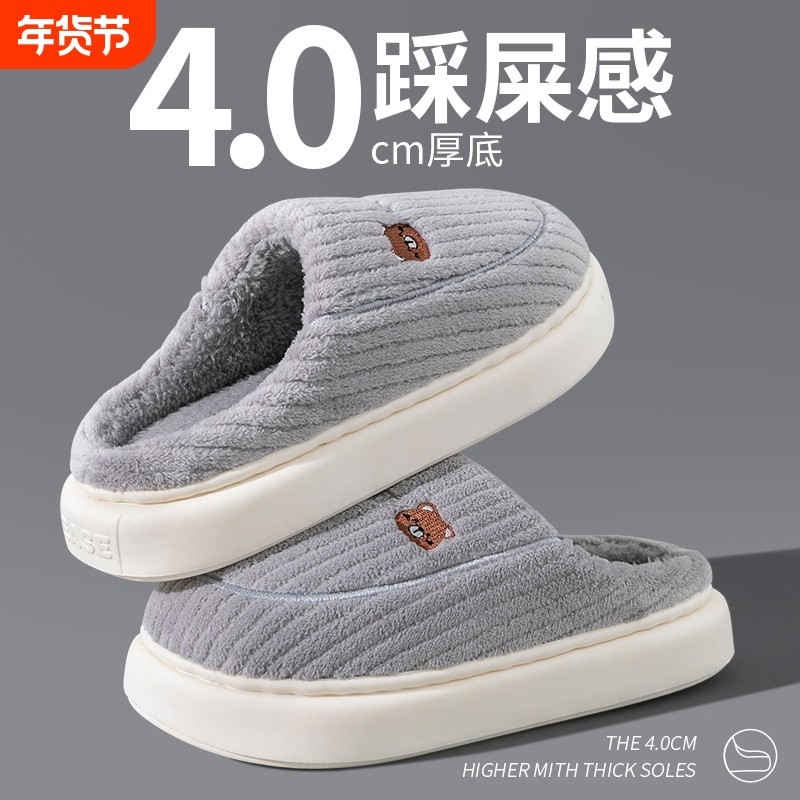 亚束棉拖鞋男士破茧外穿厚底增高情侣大码室内居家冬季保暖女新款