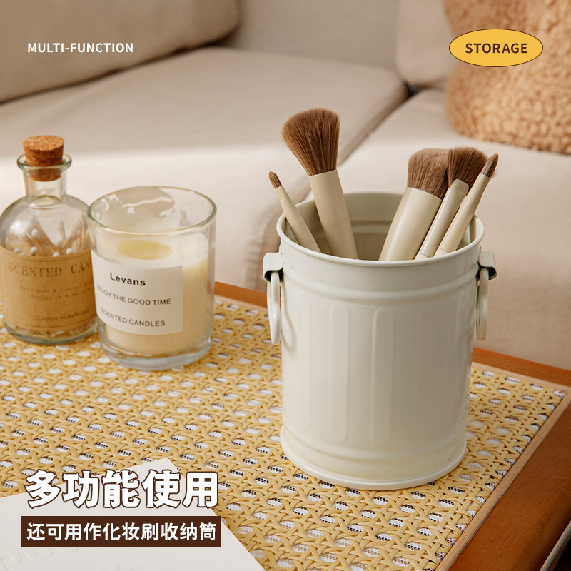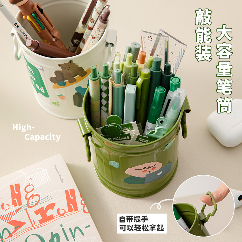 三年二班 铁艺复古笔筒大容量高级感轻奢办公室桌面收纳盒多功能简约风格学生创意笔桶可爱男孩女孩文具