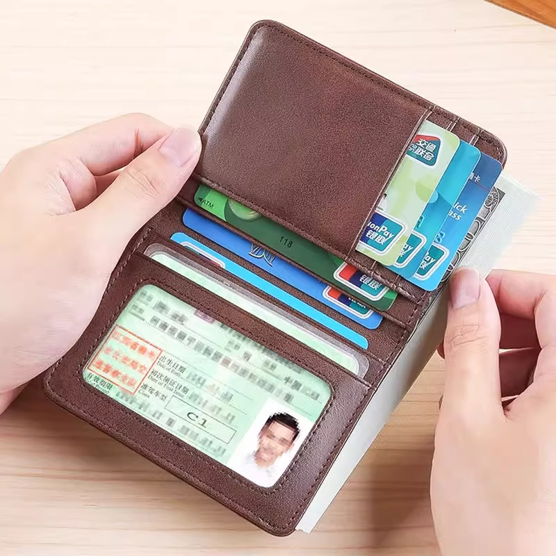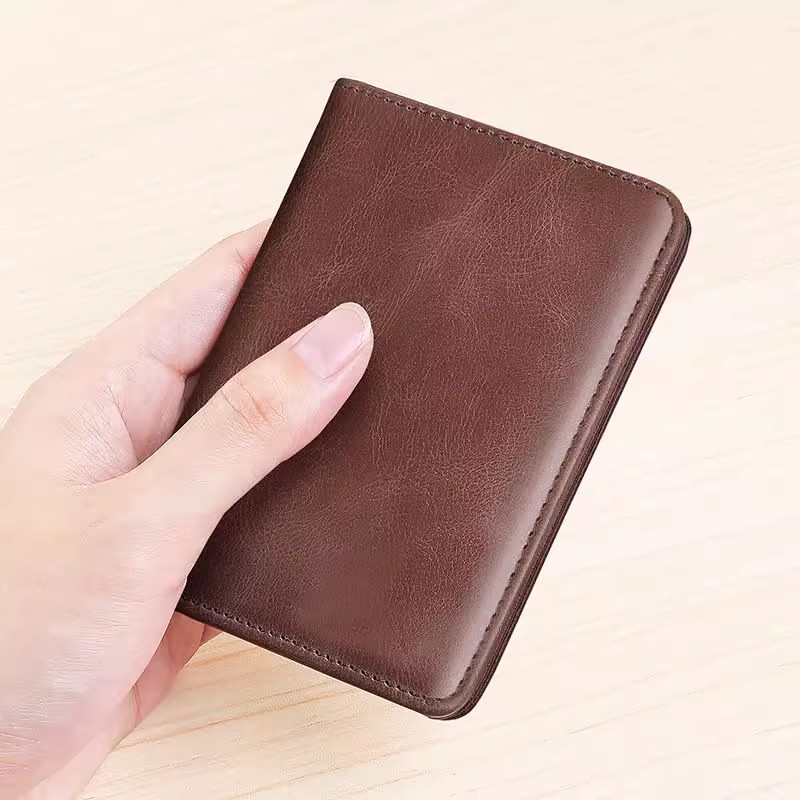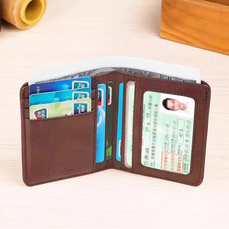 新款男士真皮质感钱包零钱夹超薄小巧短驾驶证卡照便携复古防盗刷