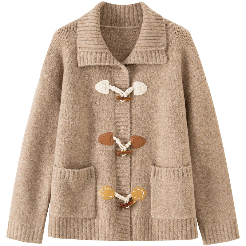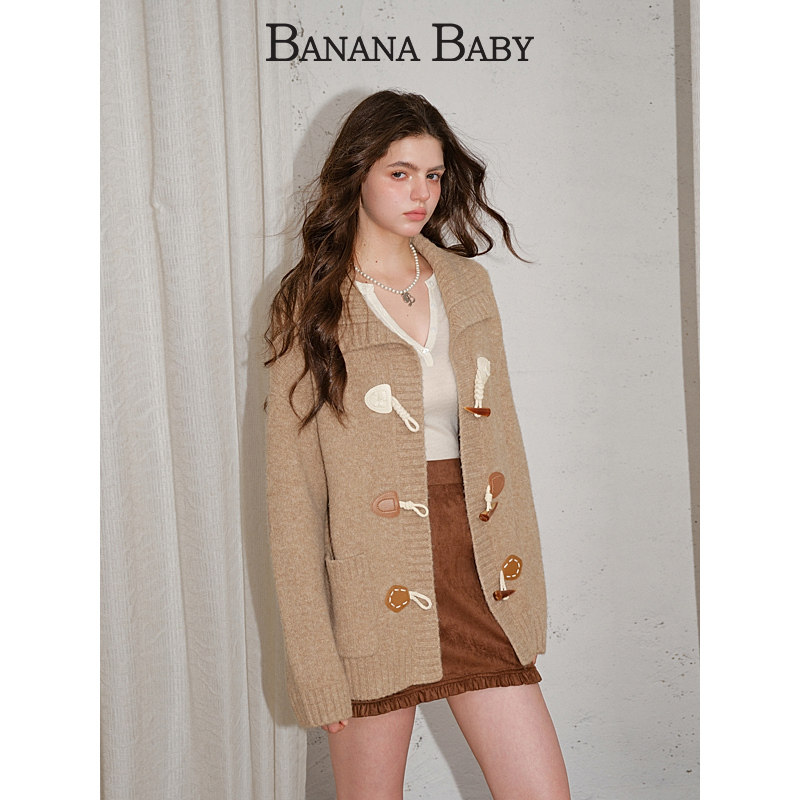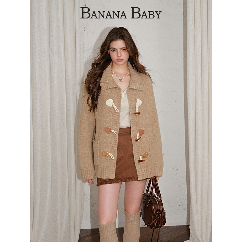 【绵羊毛】BANANA BABY2025年冬季新款复古牛角扣宽松毛衫女外套