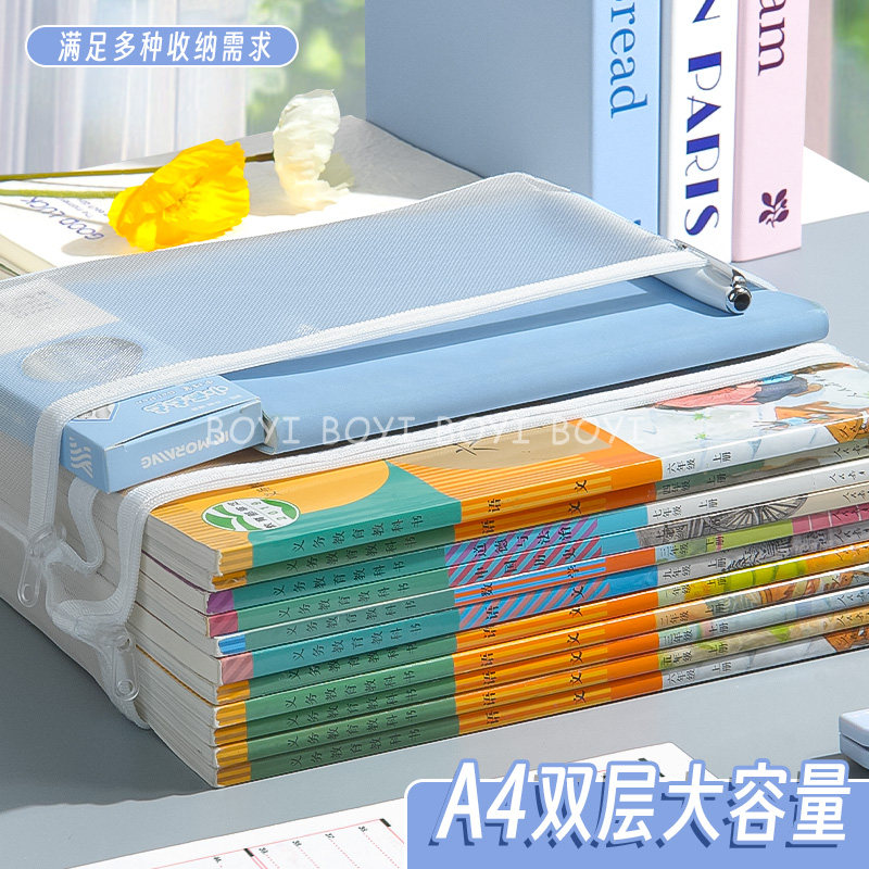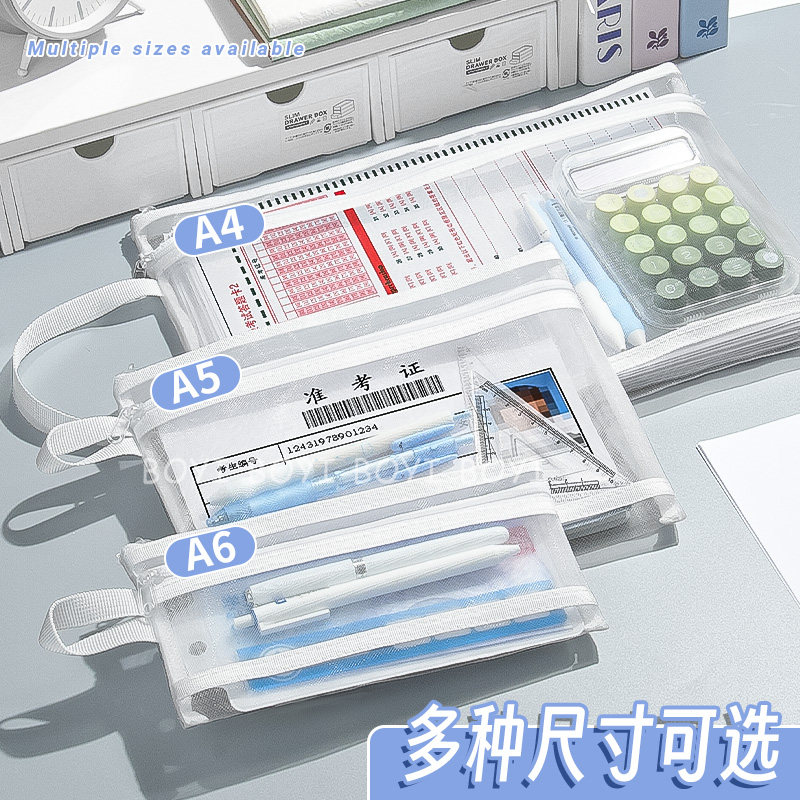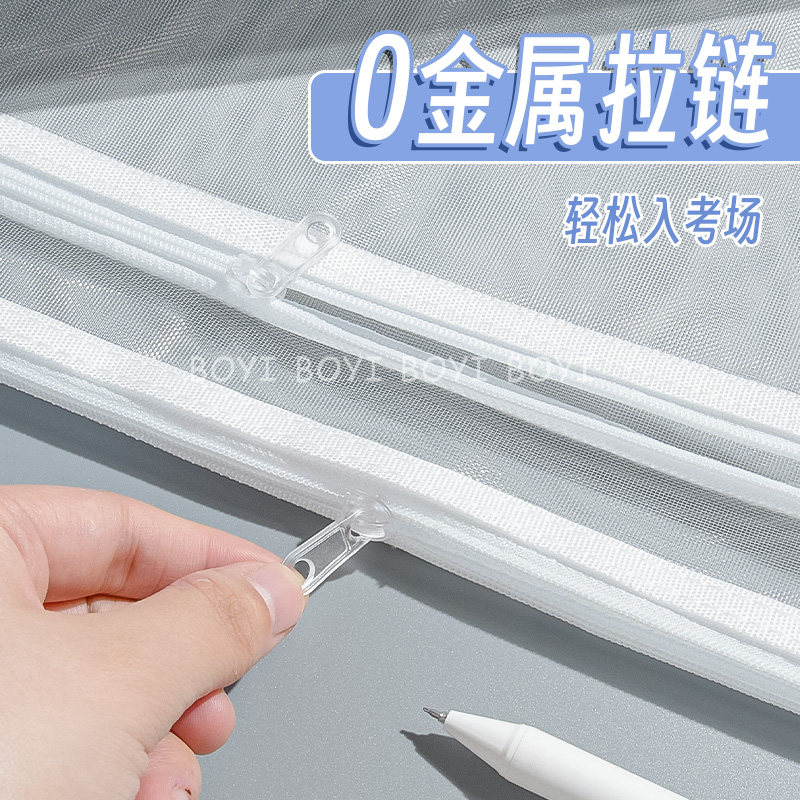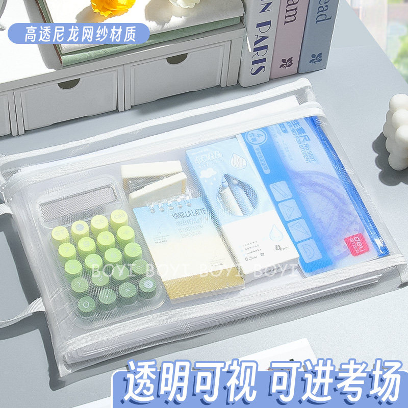 网纱文件袋A4考试专用0金属可进考场中考专用袋考试袋透明便携文具袋A5双层大容量A6笔袋期末考初中生小学生