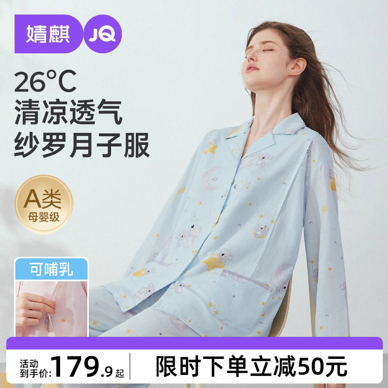 婧麒月子服夏季薄款产后纱罗孕妇睡衣怀孕期哺乳喂奶家居服套装女