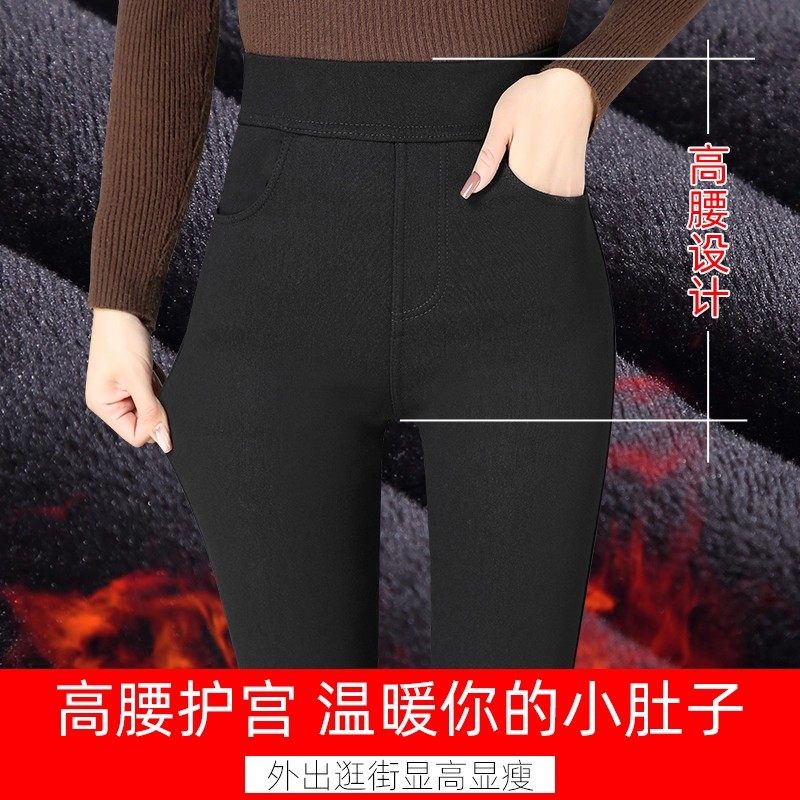 加绒打底裤女秋冬外穿2025新款高腰魔术小黑裤铅笔冬季加厚小脚裤