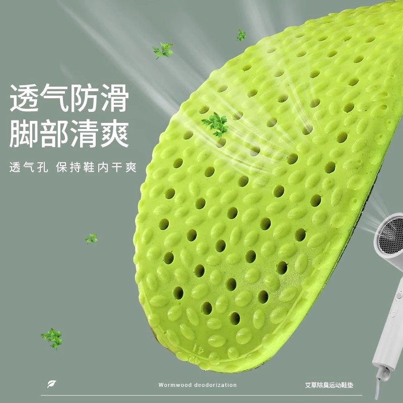 艾草除臭鞋垫男女款吸汗防臭透气软底舒适踩屎感运动减震久站不累