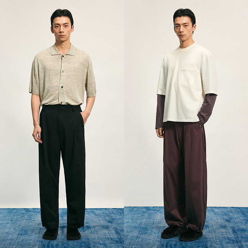 LR MADE 25SS 侧缝打褶 小弯刀垂感 碳磨洗水纯棉休闲廓形长裤