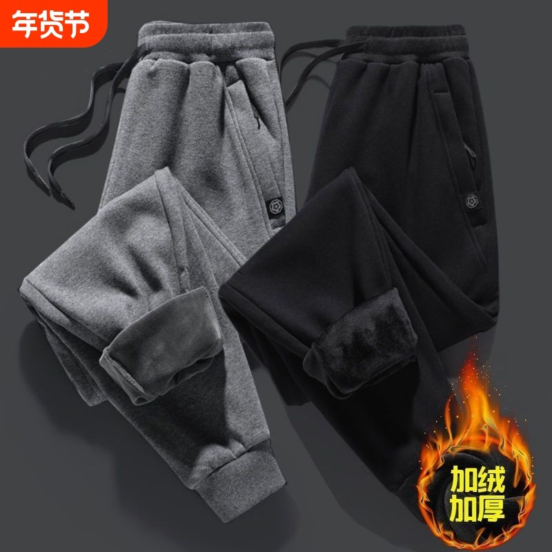加绒加厚休闲长裤子男士秋冬季2024新款保暖束脚卫裤运动弹力潮裤