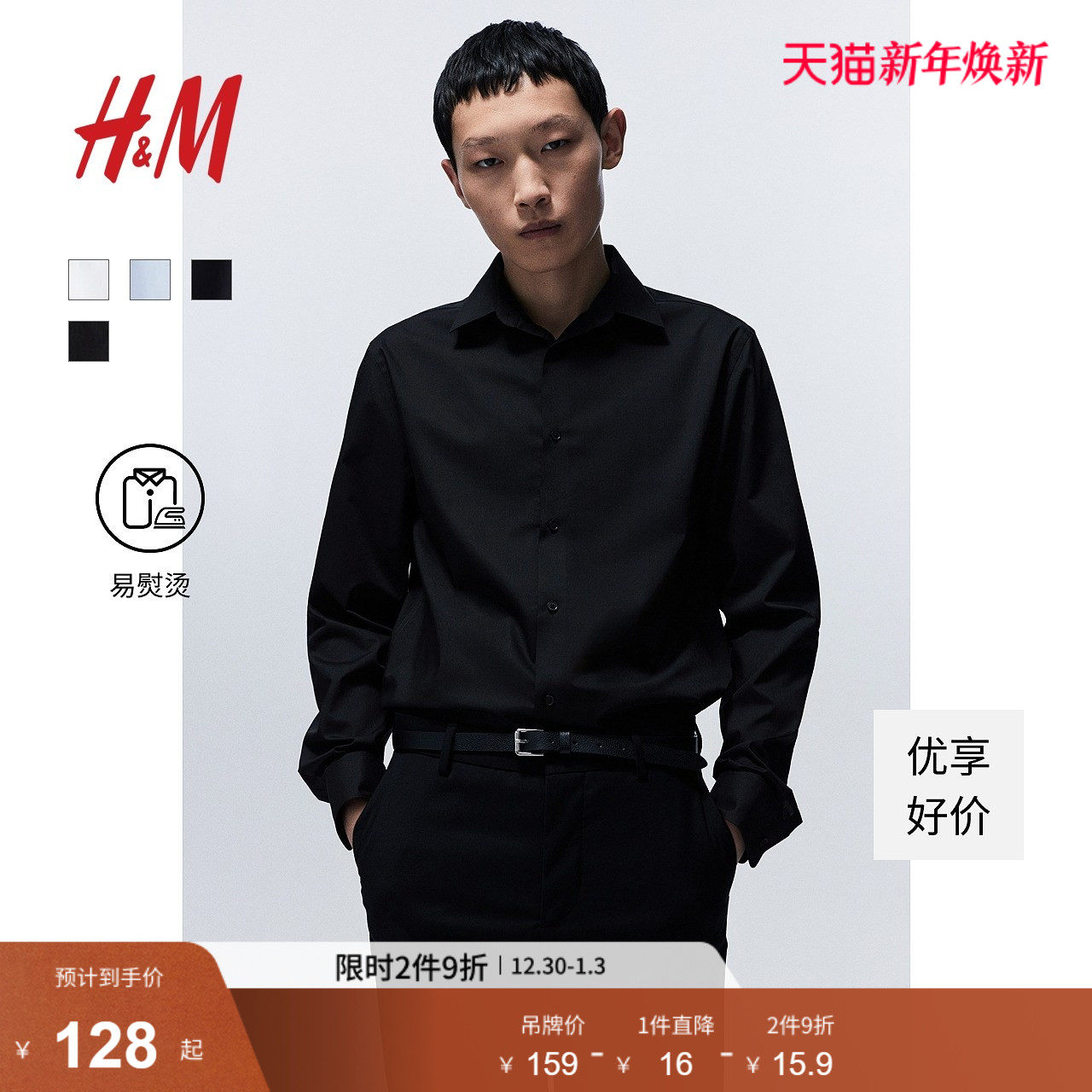HM男装衬衫冬季休闲基础舒适通勤商务长袖翻领衬衣上衣1243933