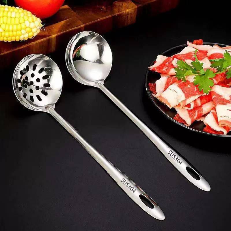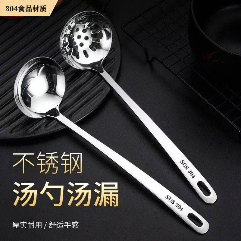 304不锈钢勺子家用长柄火锅勺盛汤勺漏勺套装大号款加厚食品级