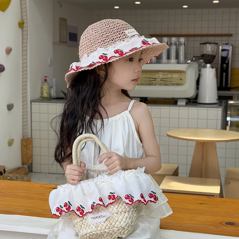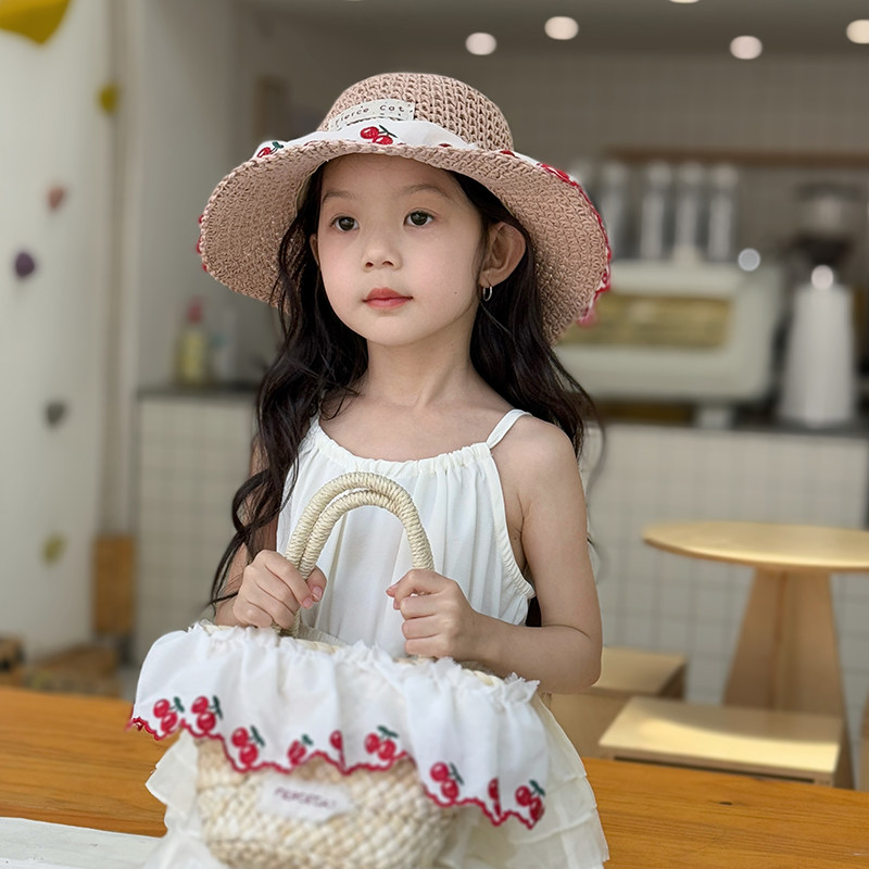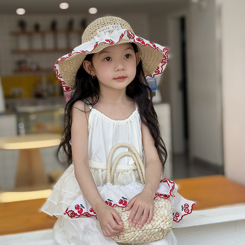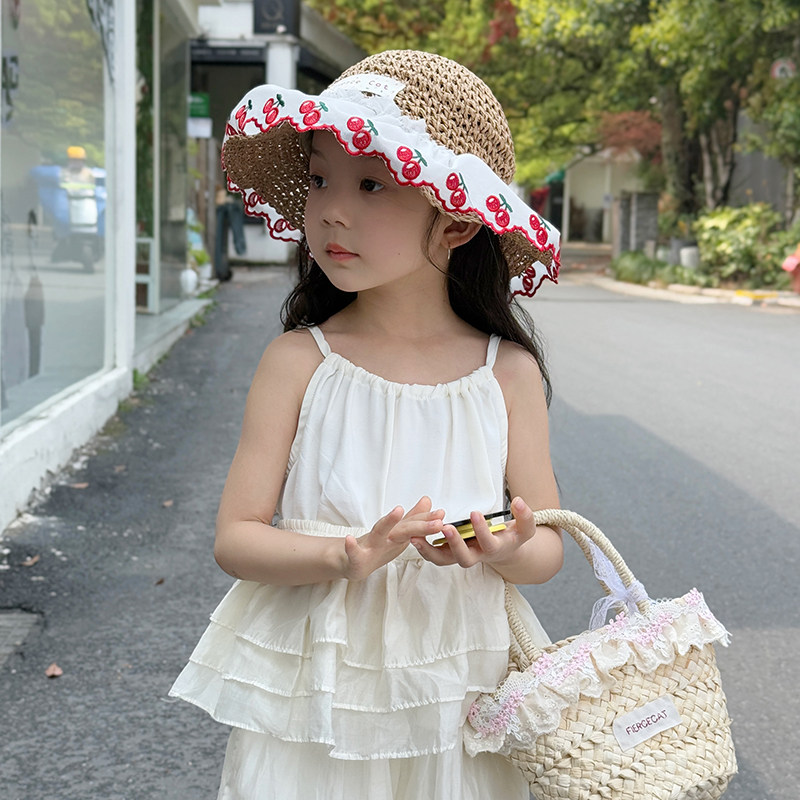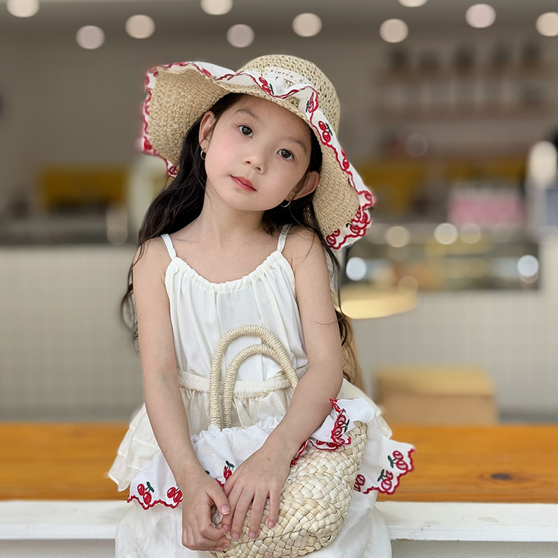 儿童帽子女孩遮阳夏季大帽檐草帽出游海边太阳帽女童甜美太阳帽