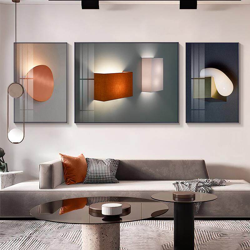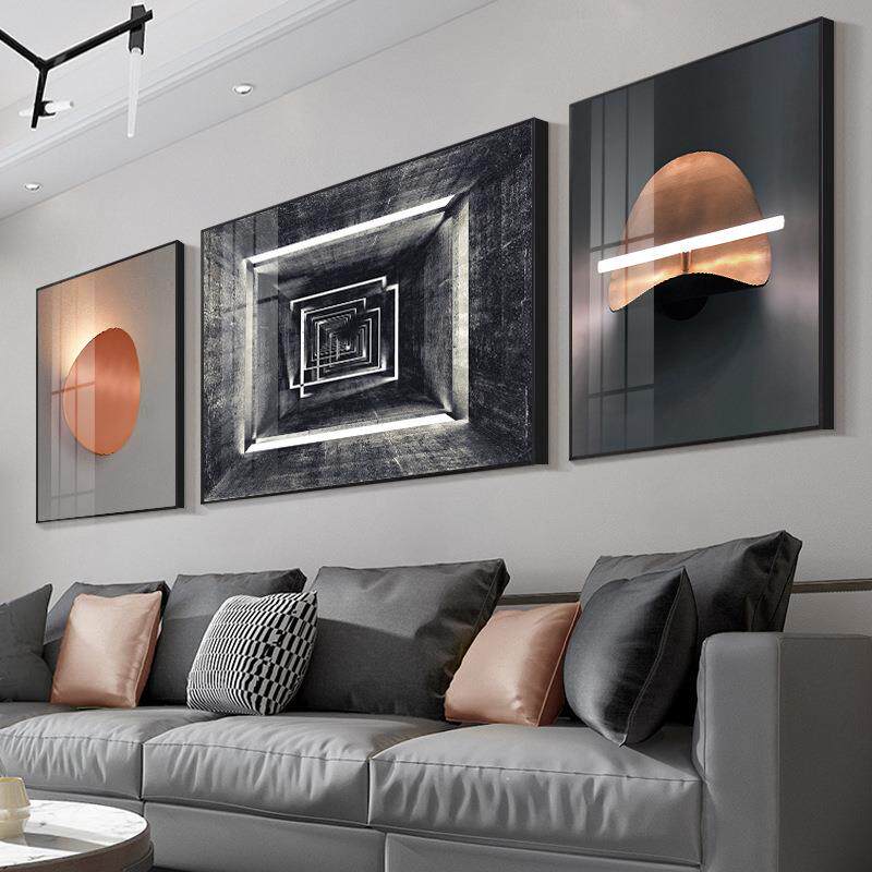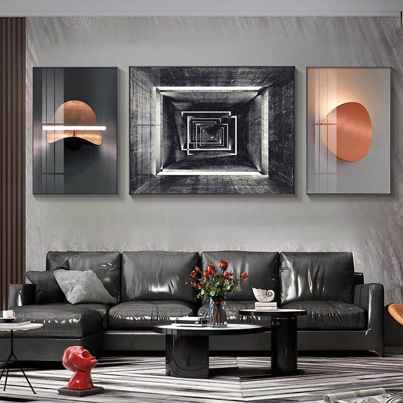 轻奢客厅装饰画现代简约视觉延伸挂画大气酒店办公室抽象三联壁画