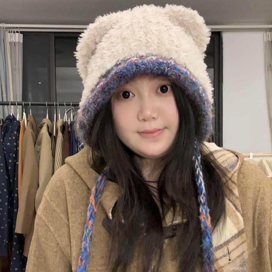 可爱帽子加绒加厚秋冬新款显脸小卡通耳朵帽子骑行帽护耳保暖帽女