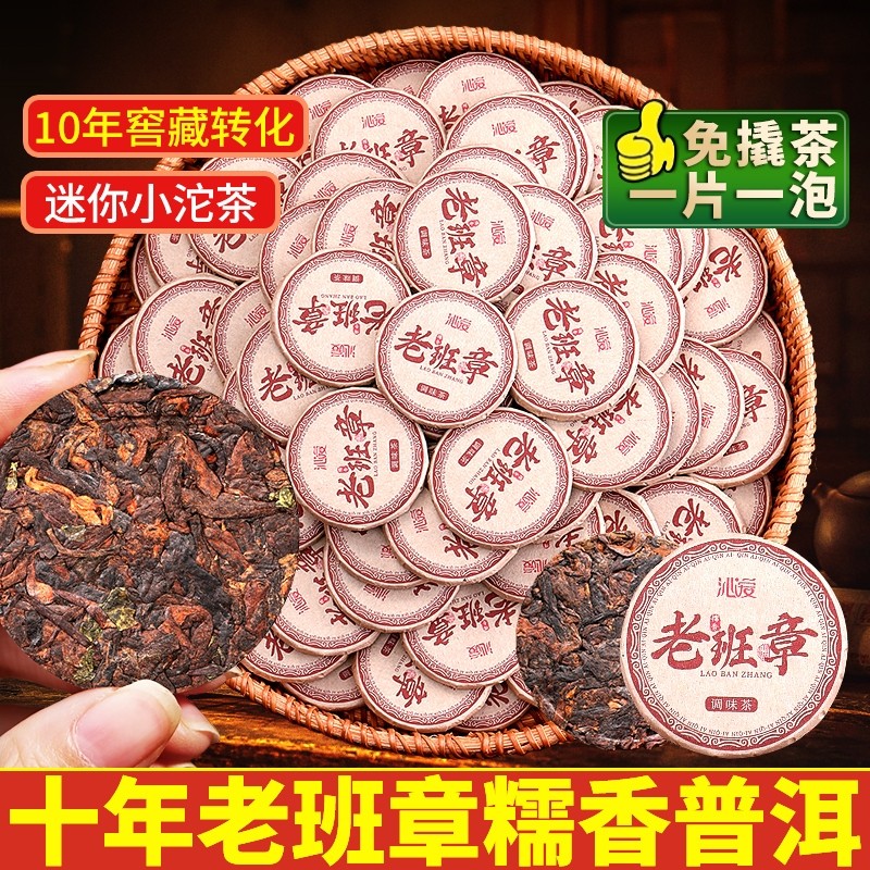 老班章普洱茶熟茶十年以上糯米香古树小沱茶玉饼茶叶自己喝茶品茗
