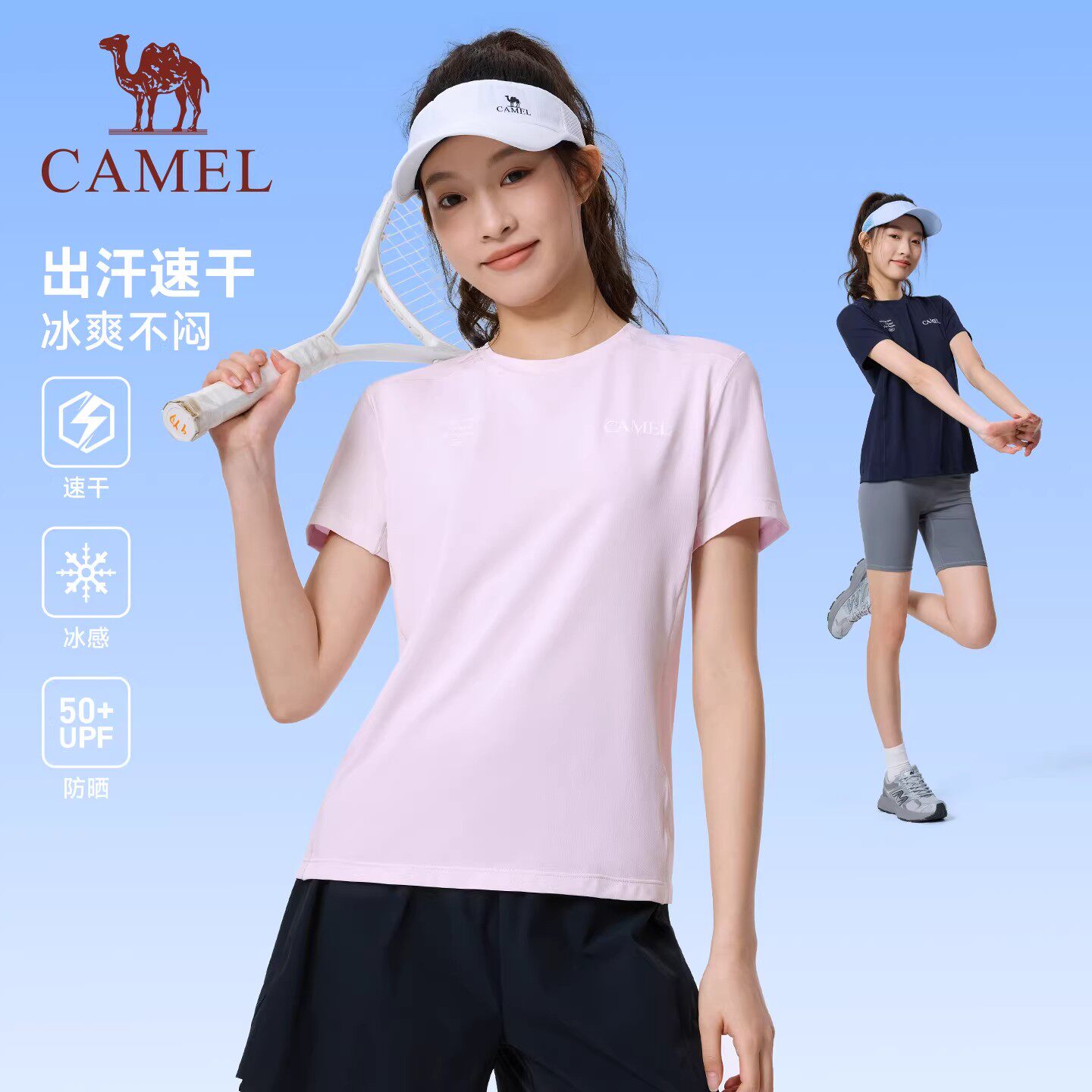 骆驼健身衣速干运动T恤女2026夏新款情侣冰感防晒圆领短袖体恤