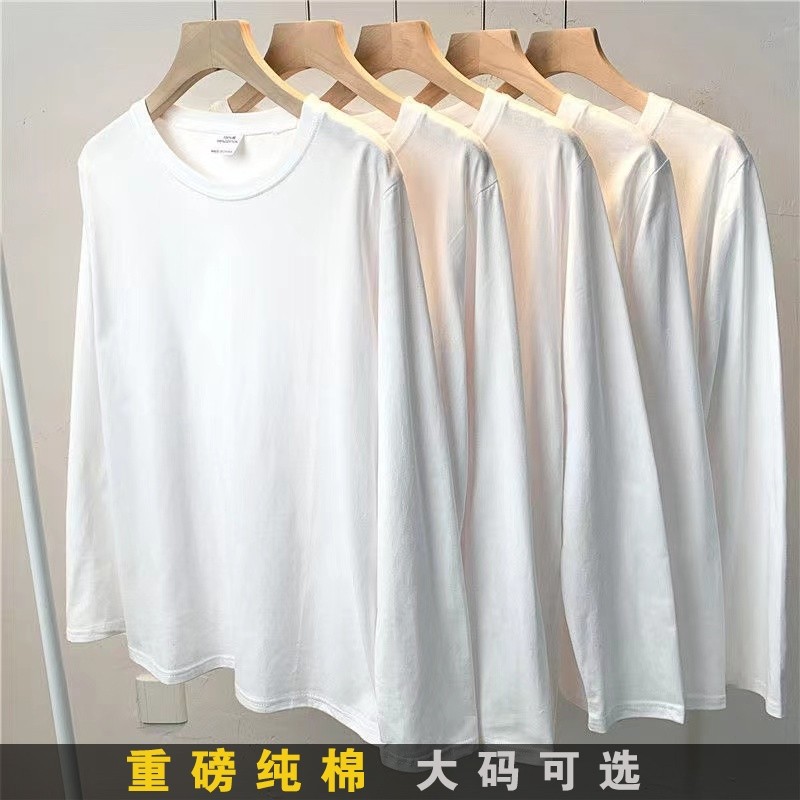 大码白色内搭上衣纯棉长袖打底衫T恤女装宽松秋冬圆领中长款