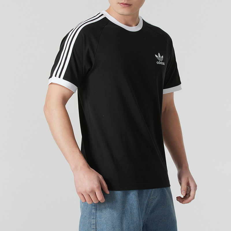 阿迪达斯三叶草黑色短袖男装休闲圆领半袖透气T恤衫运动服五分袖