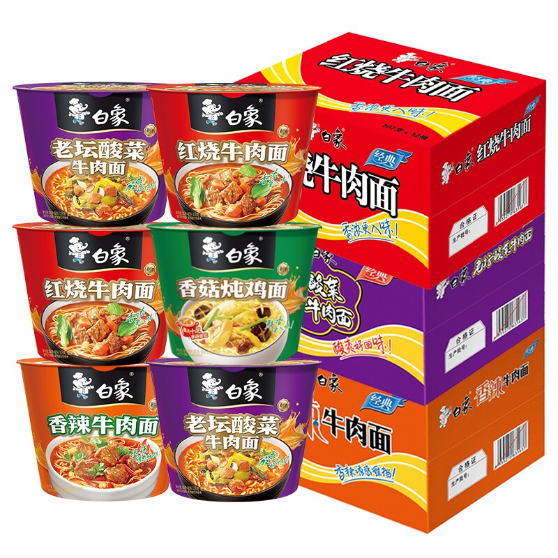 白象方便面桶装泡面整箱多口味免煮精炖红烧香辣夜宵速食官旗正品