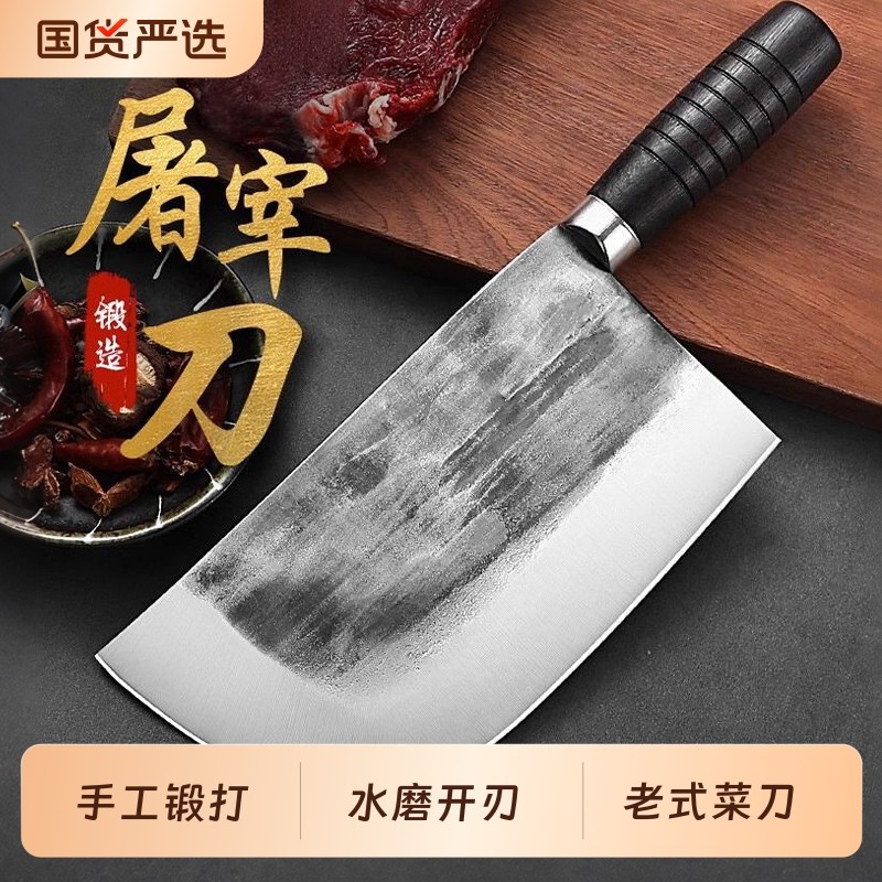 手工锻打菜刀老式杀猪专用刀具屠夫卖肉刀具商用猪肉刀宰牛羊砍骨