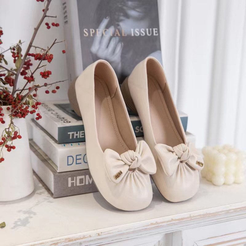 米霏~法式平底芭蕾单鞋女秋冬2025新款软底一脚蹬蛋卷鞋大码女鞋