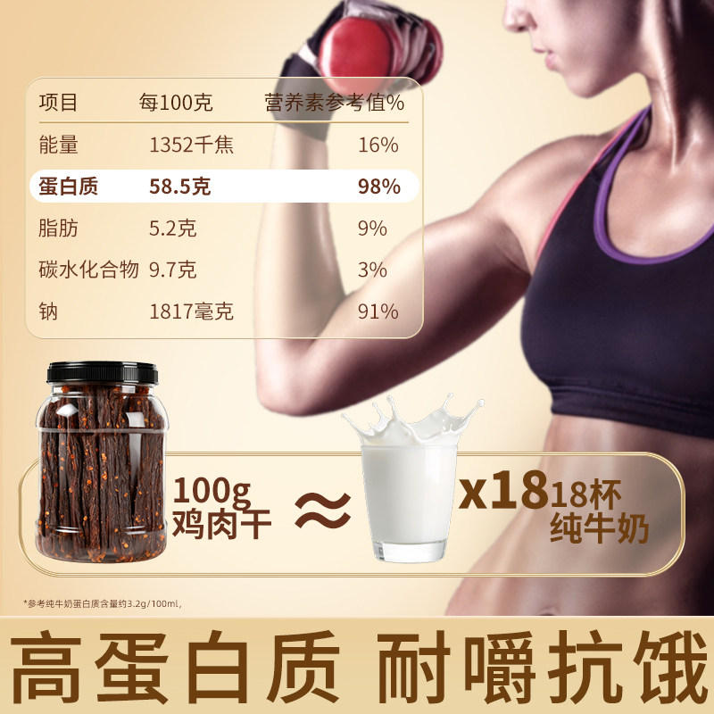 风干鸡肉干鸡胸肉条大桶减低耐嚼卡脂追剧解馋小吃零食健身蛋白棒