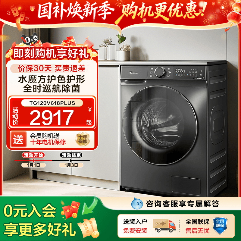 [水魔方]小天鹅洗衣机12KG大容量全自动家用滚筒洗脱一体 618PLUS