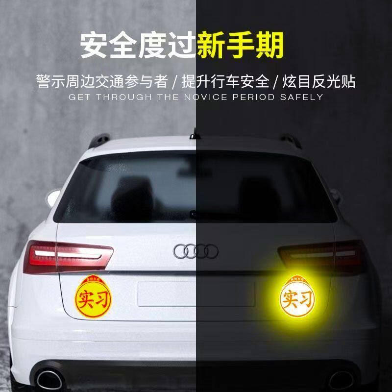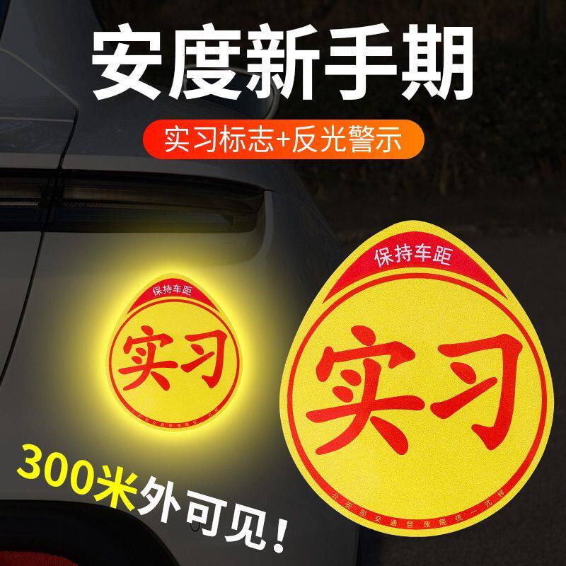 实习车贴新手上路反光磁贴汽车贴纸创意实习期专用磁吸标志女司机