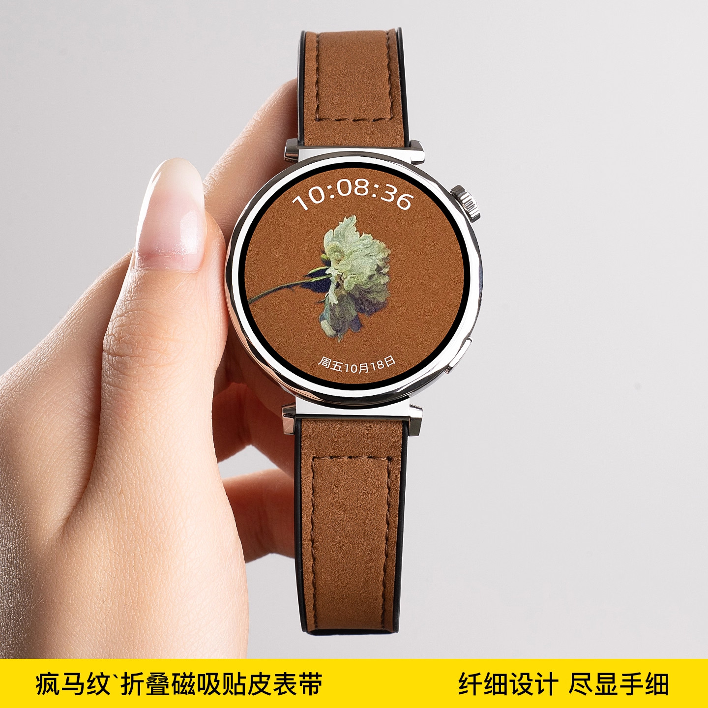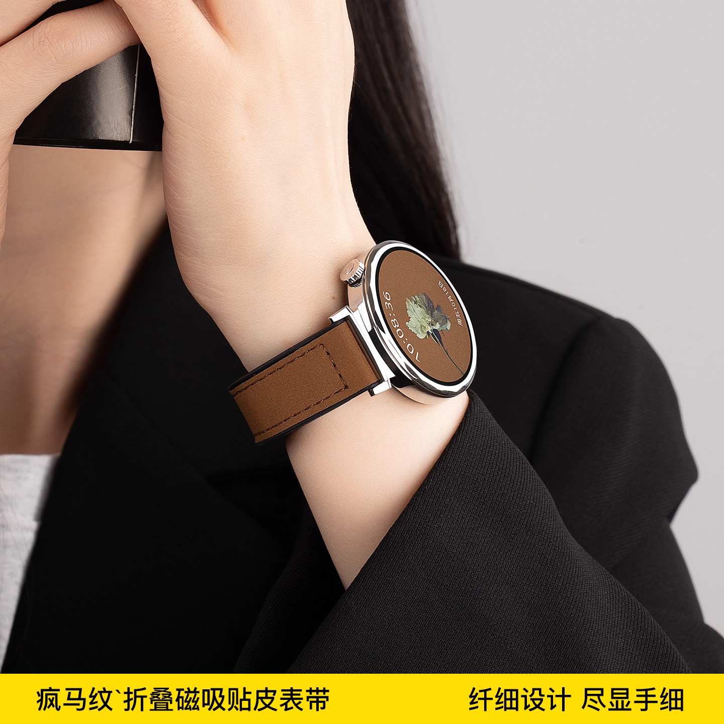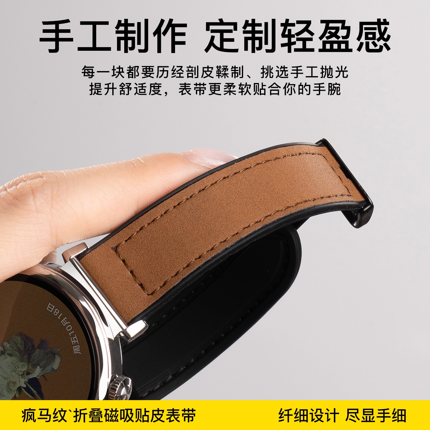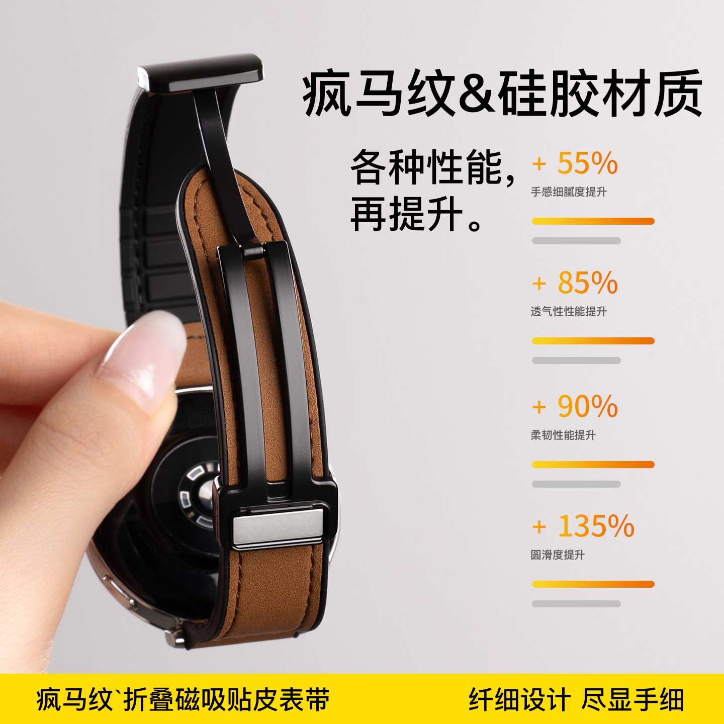 适用华为gt6表带手表gt5表带watch52025新款皮gt4男款gt3智能疯马纹fit4女款pro手表带磁吸腕表男士运动秋冬