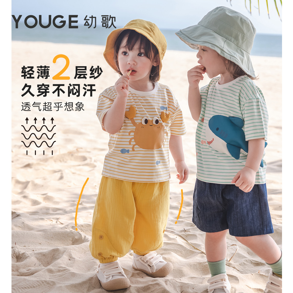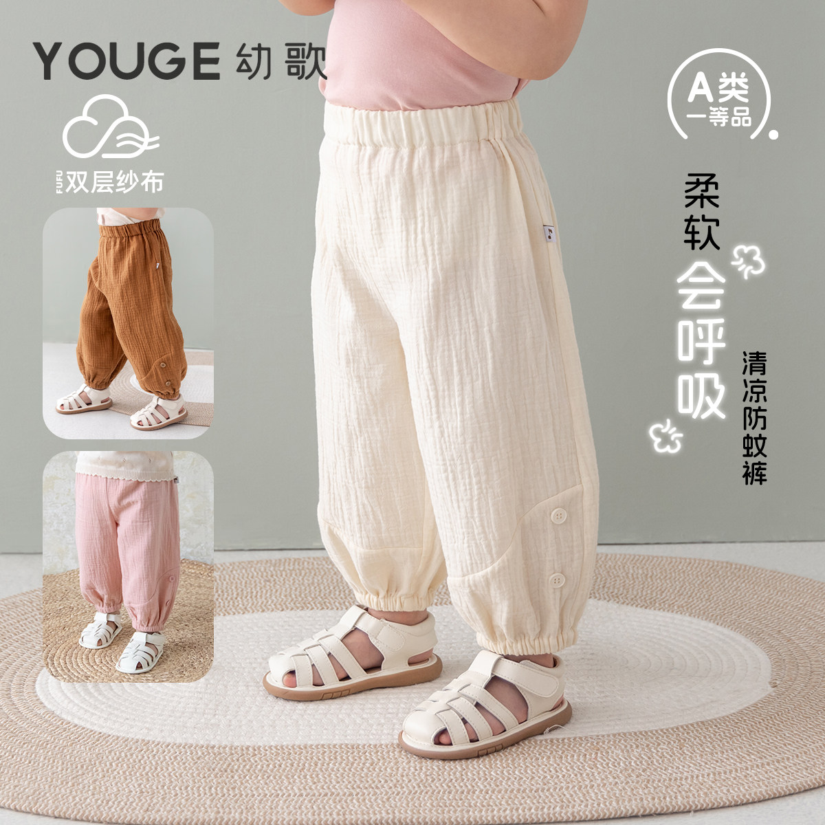 幼歌婴幼儿夏季新款缤纷百搭清凉舒适透气轻薄纯棉双层纱布防蚊裤