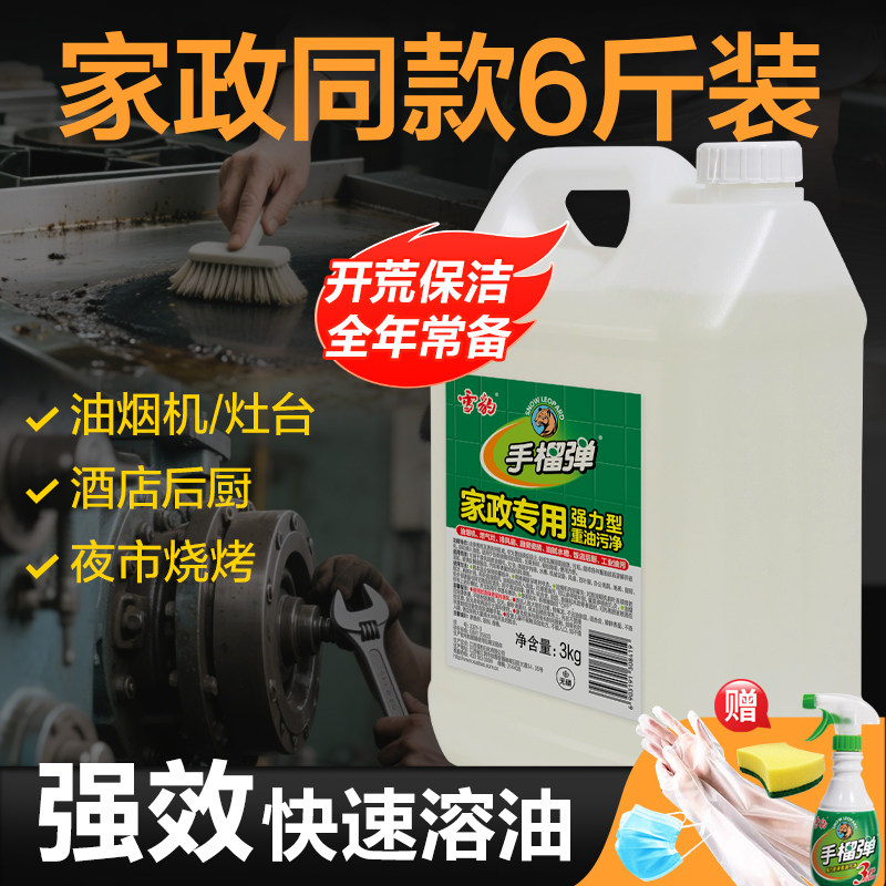 雪豹手榴油污净厨房强力去油污油烟机家政餐馆大桶6斤油污清洗剂