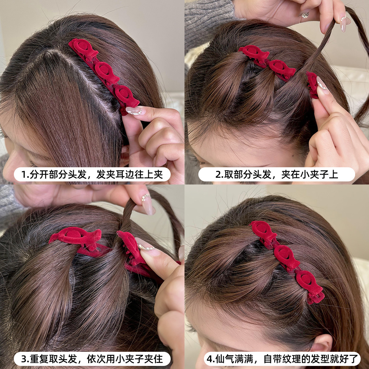 蝴蝶结刘海梳发夹新款碎发整理神器造型发梳插梳卡子专用随身头饰