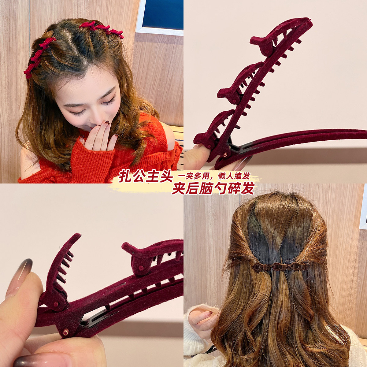 编发发夹女新款侧边碎发夹高颅顶夹前额刘海植绒边夹发饰蓬松鸭嘴