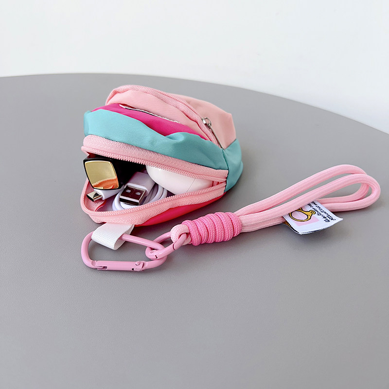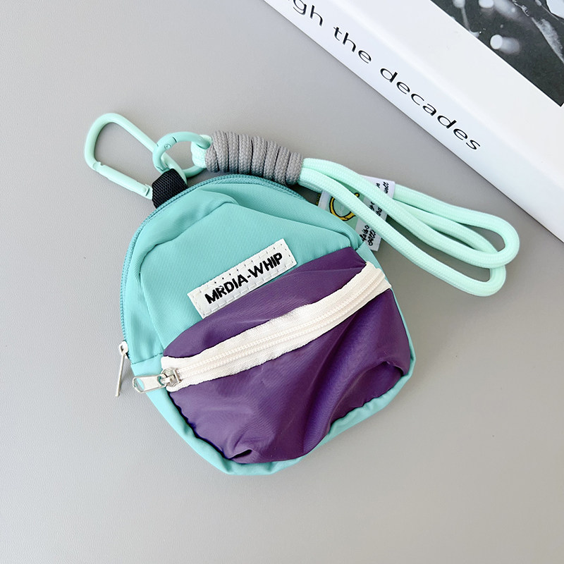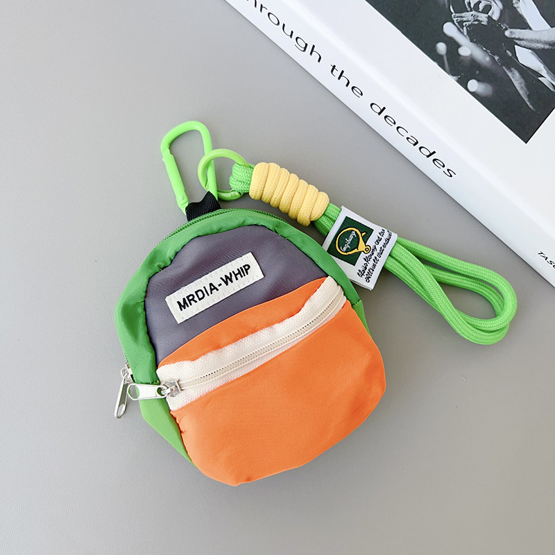 多巴胺时尚撞色零钱包挂件男女学生迷你拉链小书包耳机钥匙扣男孩女孩可爱挎包口红包证件收纳袋短款手腕挂绳
