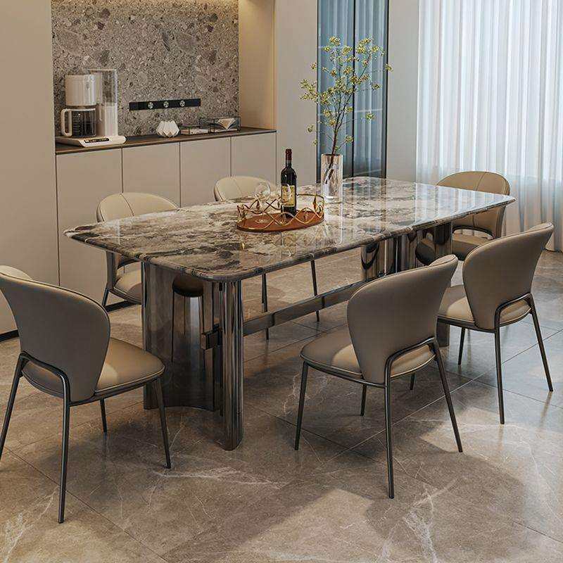 意式极简轻奢岩板大理石餐桌家用可伸缩设计师款小户型餐厅桌