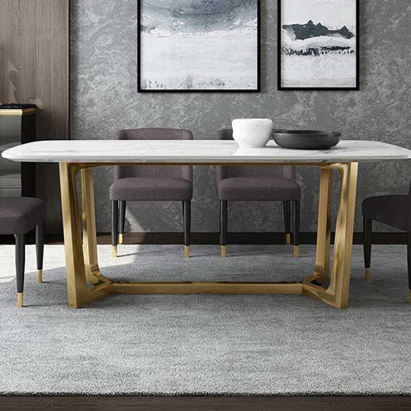 轻奢长方形餐桌白色大理石客厅吃饭桌子婚礼宴会咖啡厅酒店餐台