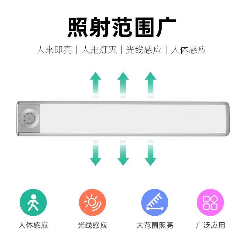 智能人体感应小夜灯衣柜鞋柜灯 LED磁吸感应灯条充电式72灯珠
