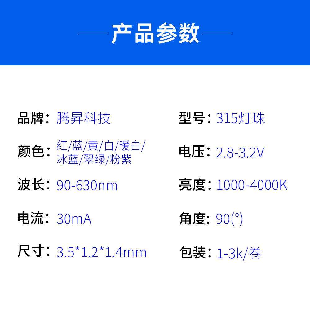 高亮侧发光315红蓝黄暖白冰蓝翠绿粉紫LED贴片发光二极管315灯珠