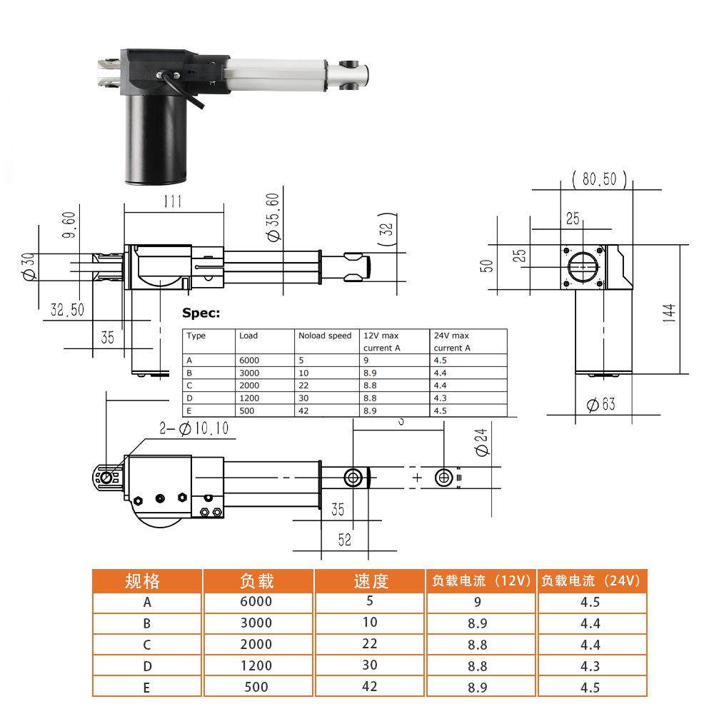 850mm行程电动推杆大推力微型电动适用病床沙发按摩椅电动推杆