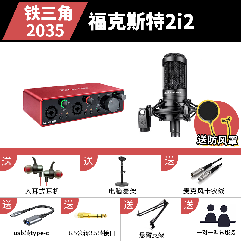Audio Technica/铁三角 AT2035麦克风电容话筒录音配音k歌直播