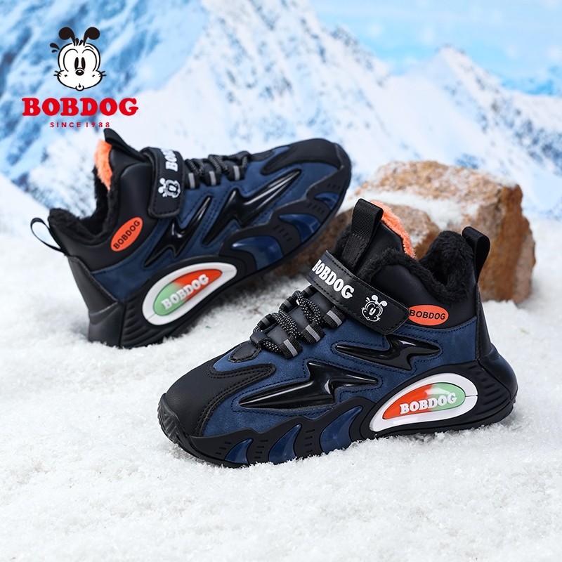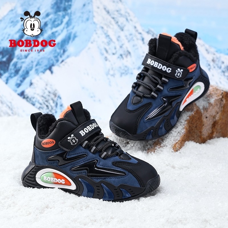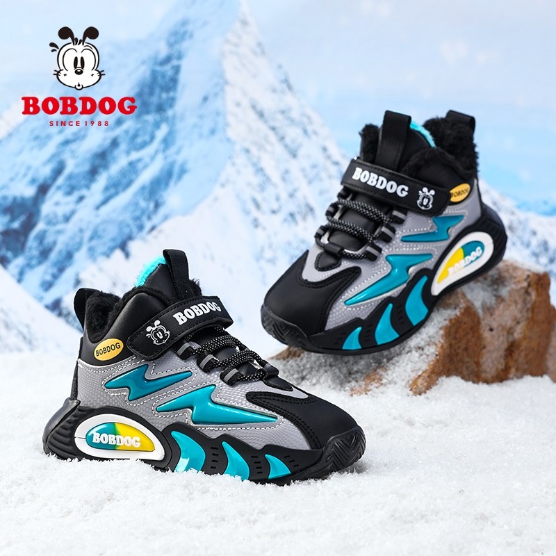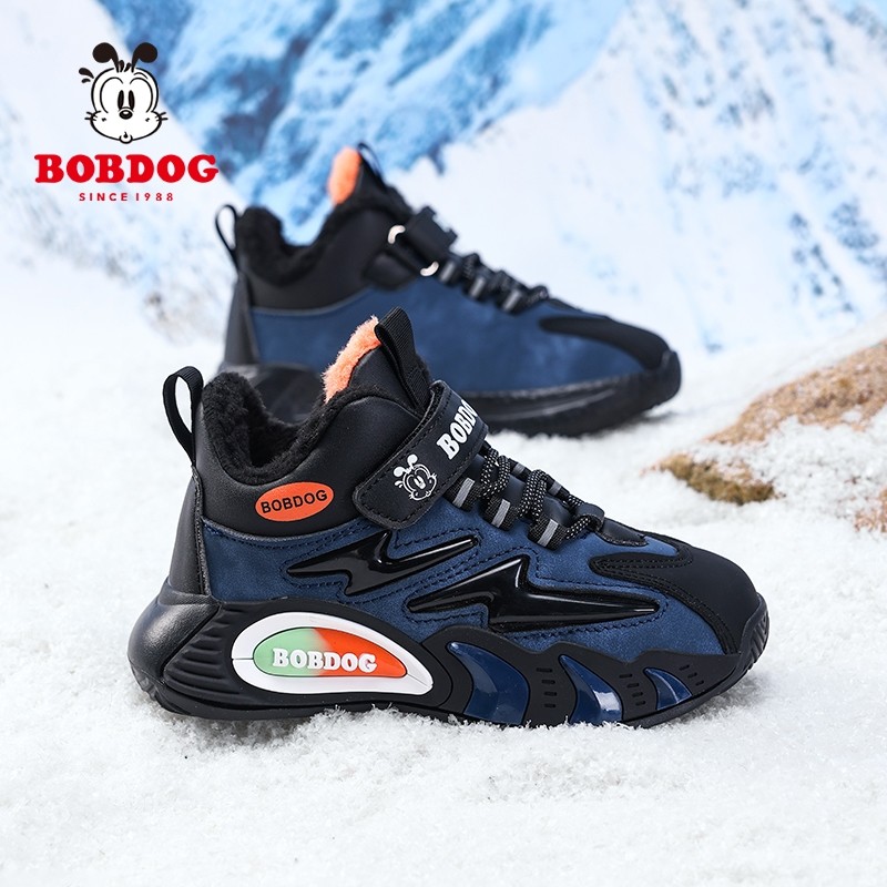 巴布豆男童棉鞋加绒保暖大棉鞋2025冬季新款防水中大童儿童运动鞋