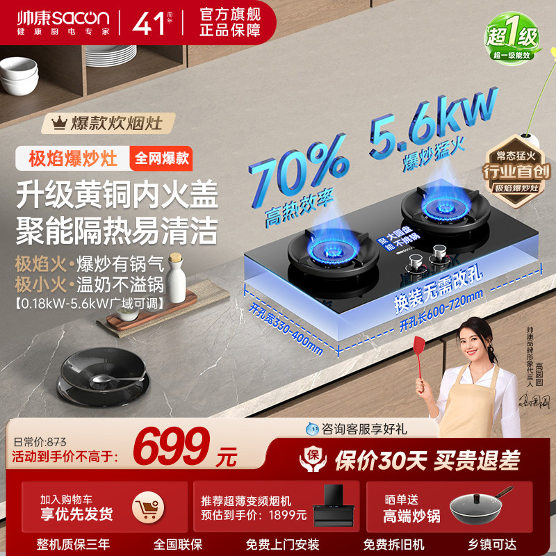 帅康3B812燃气灶家用双灶猛火嵌入式天然气液化气以旧换新补贴